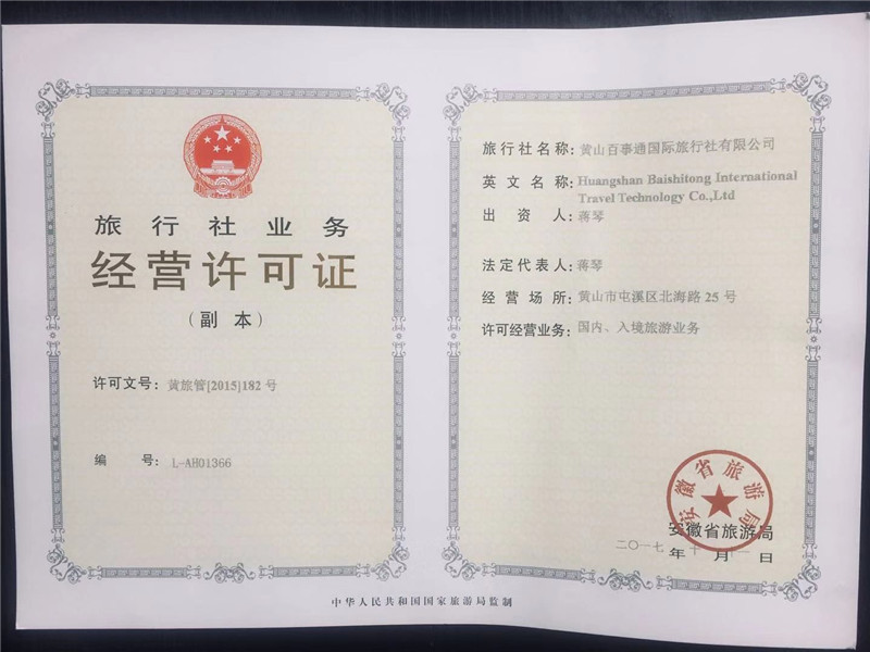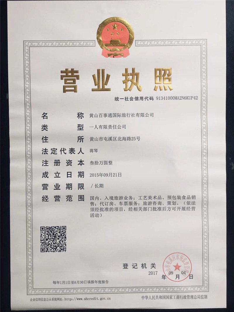 黃山百事通國際旅行社有限公司成立于2015年,我們著力于專做網絡直客,為每位來黃山的朋友解決訂房、訂車、導游服務、安排線路、旅游保險、會議接待等一條龍服務。注重旅行中的體驗、交流、探索、分享和互動。